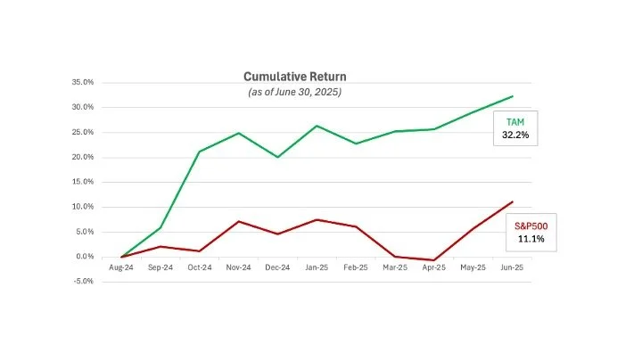 supported by the consistent outperformance of the Tam Macro portfolio in comparison to the S&P500 index.
